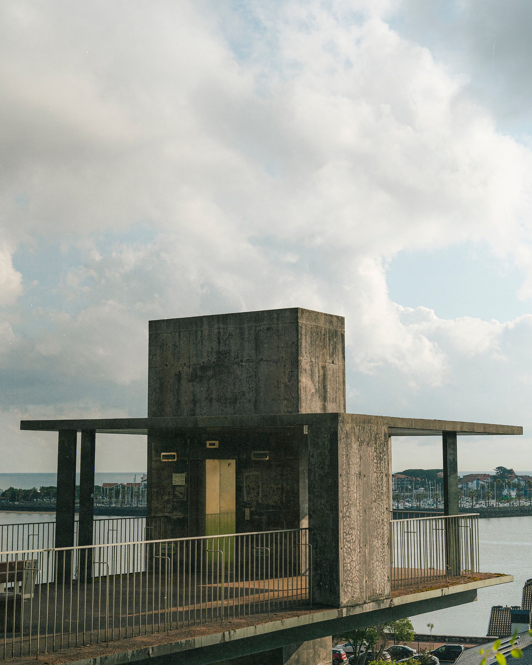 Arquitectura brutalista en Hondarribia, Gipuzkoa, País Vasco. Brutal, natural y hostil. Modernidad al servicio de la parte vieja de una ciudad. Nada pretende ser lo que no es. Brutalismo. Ascensor desde 2011.